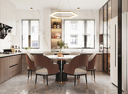 效果圖展示 整體定位現(xiàn)代簡(jiǎn)約風(fēng)格,從功能出發(fā),發(fā)揮有限空間里的各種可能性,打造簡(jiǎn)約舒適、低調(diào)而內(nèi)斂的生活間。時(shí)下流行的“輕奢主義”,顧名思義是一種“輕度的奢侈”。 客餐廳 在本案中,提取一些輕奢元素點(diǎn)綴其中。通過(guò)一些精致而不失高檔的軟裝元素來(lái)凸顯質(zhì)感,讓單調(diào)的空間顯得更飽滿,處處透露著不俗的品味。