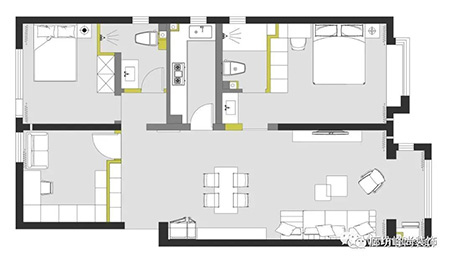 ▲設計改造: *更改次衛(wèi)門洞位置,規(guī)避入戶正對衛(wèi)生間等問題; *保證主衛(wèi)使用功能前提下,縮小主衛(wèi)空間,擴大主臥睡眠區(qū); *入戶嵌入玄關柜,完善功能