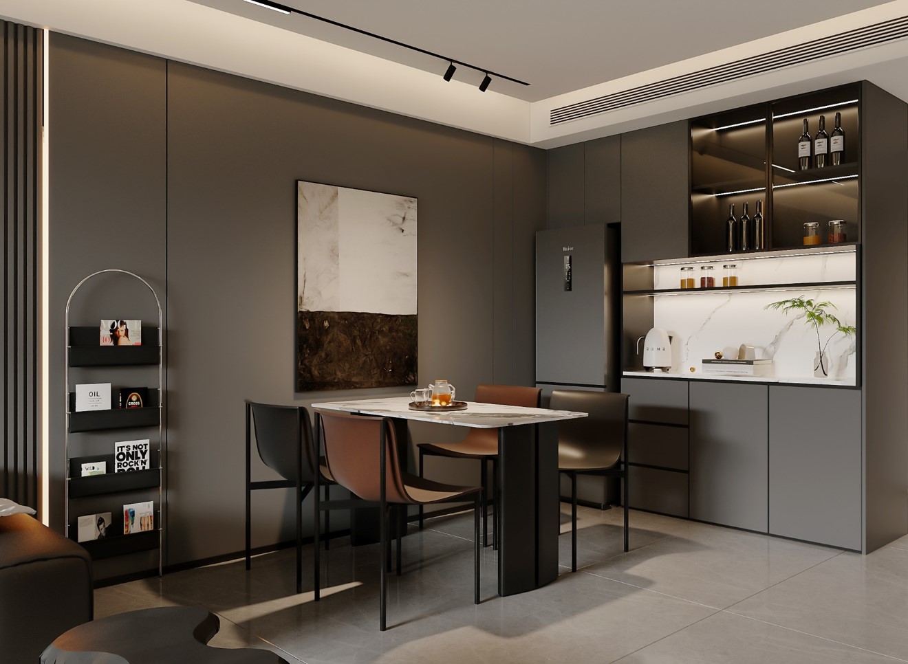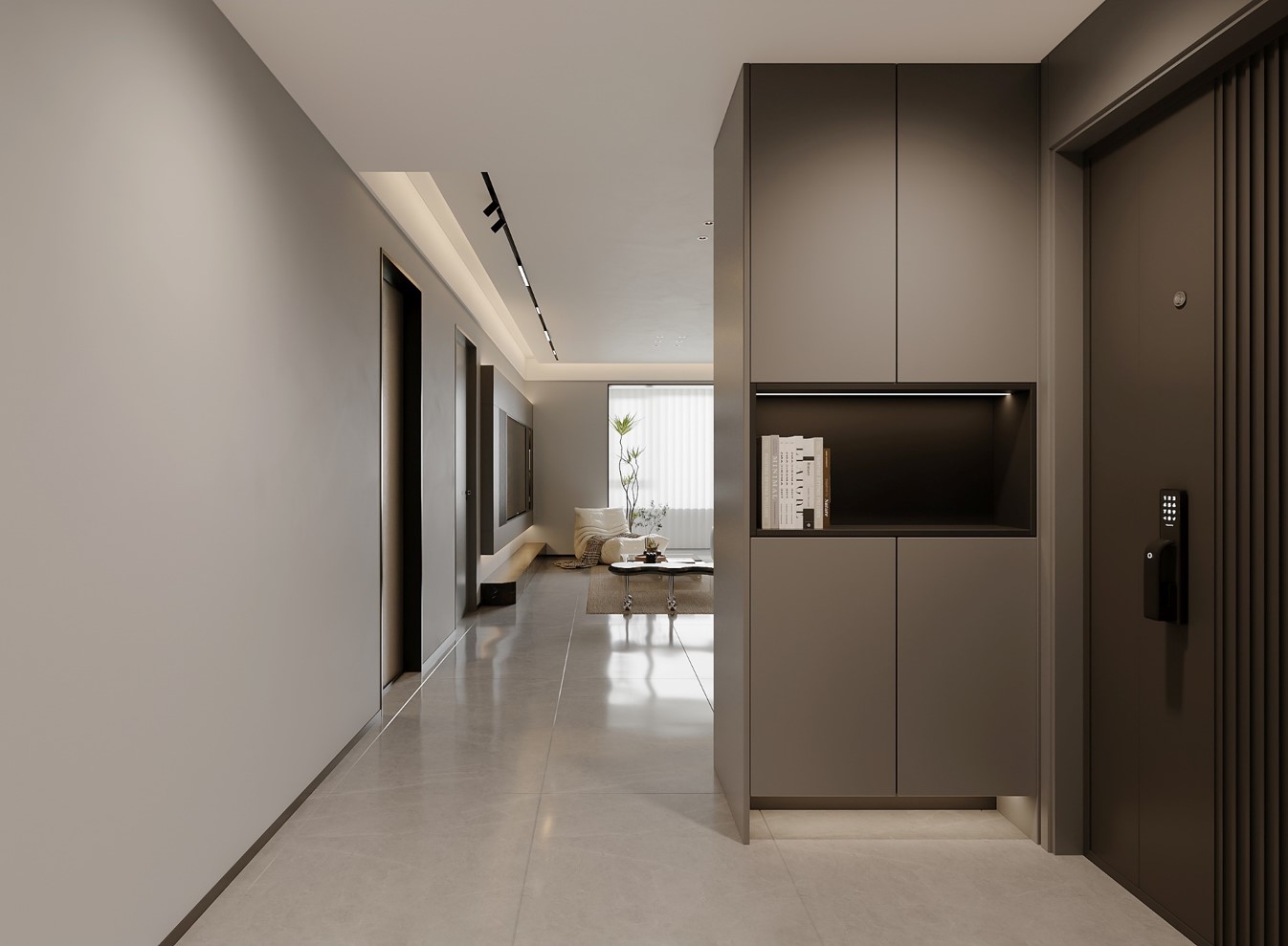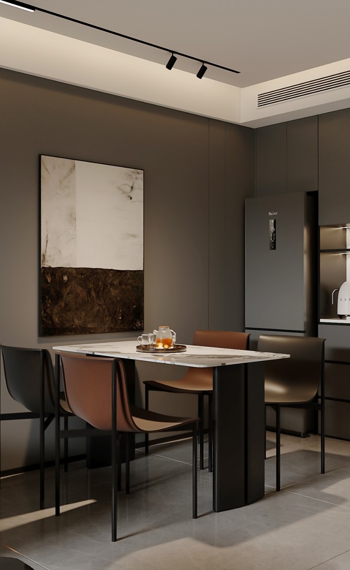 餐廳的設計在餐邊柜這個位置采用了背靠背的設計既滿足了鞋柜的空間使用也增加了餐廳的利用率。