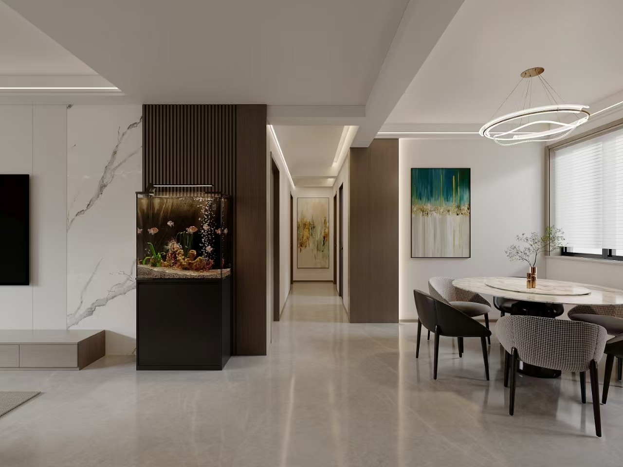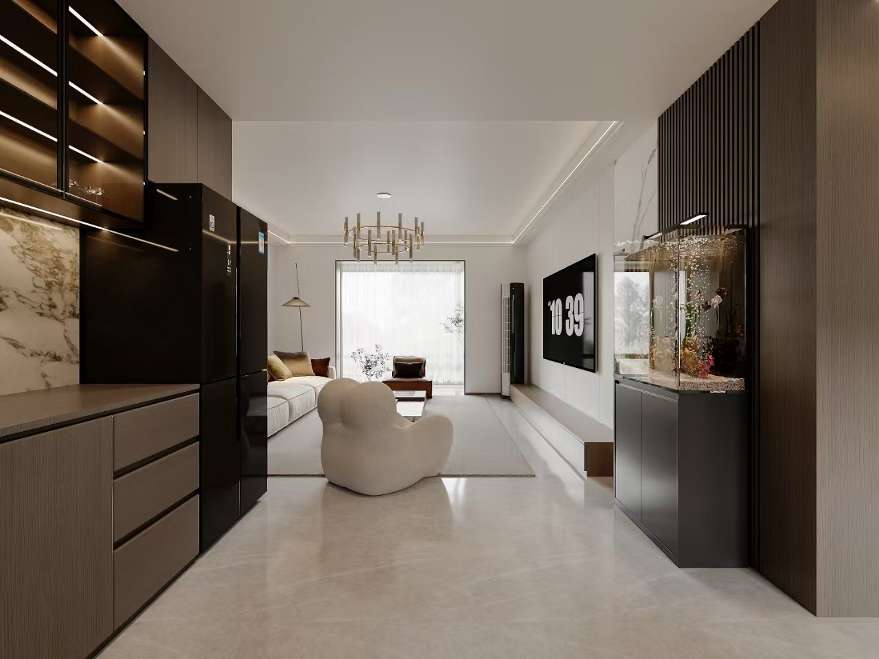 這套家裝設計,從整體風格到細節(jié)把控,都充分考慮了居住者的生活需求與審美偏好,致力于打造一個 舒適、美觀且實用的家居環(huán)境。