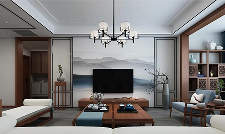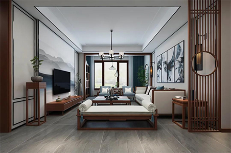 設計說明:業(yè)主是理工男,從事軟件開發(fā)工作,有著理工男特有的嚴謹,同時由于家族的關系對中國傳統(tǒng)文化有著一定研究和喜愛,所以設計風格定位為新中式,方和圓實際上是中國人對事物的處理方法也暗含中國人對天地的看法與理解。