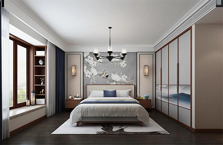 主臥室:中式元素與現(xiàn)代元素統(tǒng)一,舒適與實用并存。